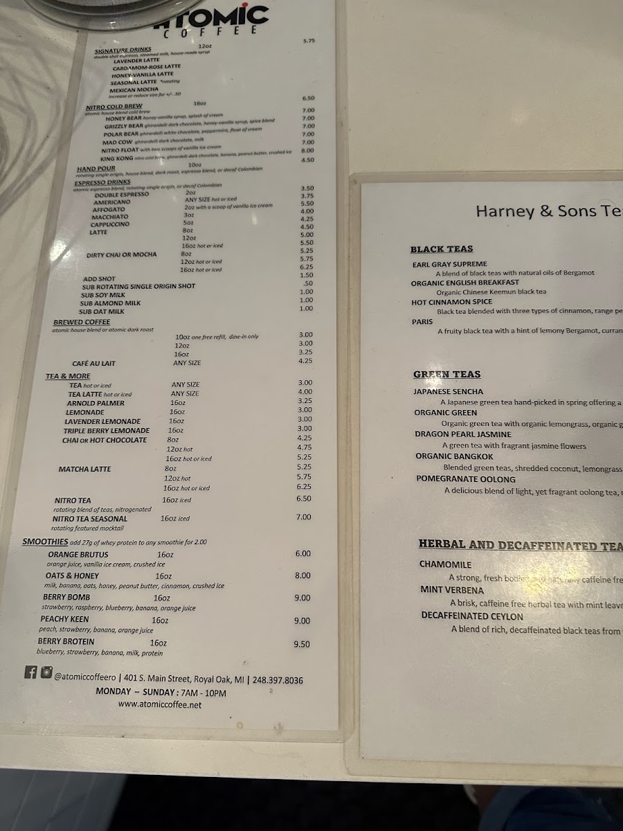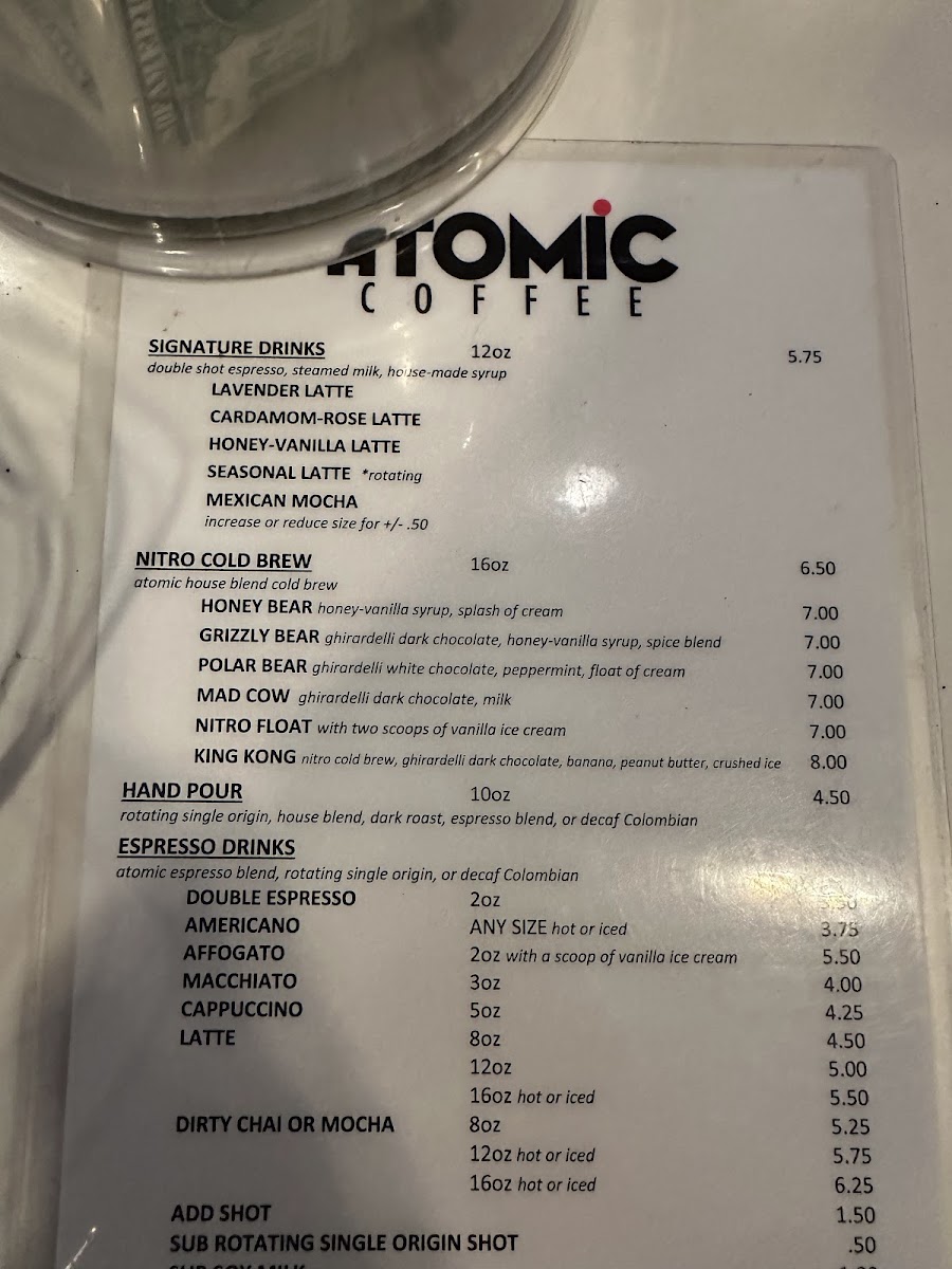 Atomic Coffee is not just about the drinks; it's about creating memorable moments with every visit. Come in for a quick caffeine fix or linger a little longer to soak in the charm.